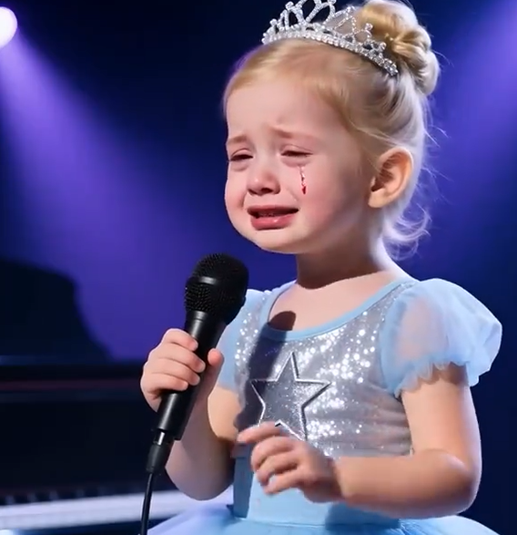 She stood there in a baby-blue tutu, tiara perched atop her golden curls, looking like a character straight out of a fairytale. The lights were soft, the stage quiet. Her hands trembled as they clutched the microphone. And then, without warning — her little face crumpled. A single tear ran down her cheek, then another, until her tiny shoulders shook with a cry no script could prepare us for.