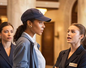 “Good afternoon,” the woman said calmly, removing her cap. “I believe there’s been a mistake. I own this hotel.”