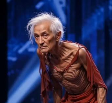 When the frail, hunched figure stepped into the spotlight — skin stretched over sharp bones, silver hair wild and untamed, wearing nothing but a tattered red dress — some whispered, others smirked, and a few shifted uncomfortably in their seats. This was America’s Got Talent All-Stars, a stage where dreams roared to life… but tonight, silence crept in like fog.