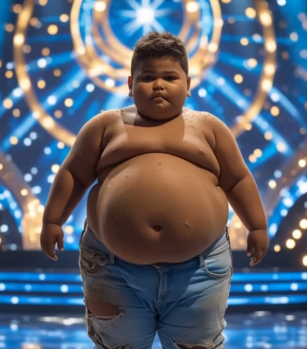 The stage lights glowed with their usual brilliance as the audience leaned forward, waiting for the next act to unfold. Suddenly, a small figure stepped onto the stage — a young boy, no more than a child, barefoot, his shirtless body revealing his round belly, and his jeans torn in places. At first, the crowd didn’t know how to react. Some chuckled softly, others exchanged doubtful looks. Was this really the next contestant?