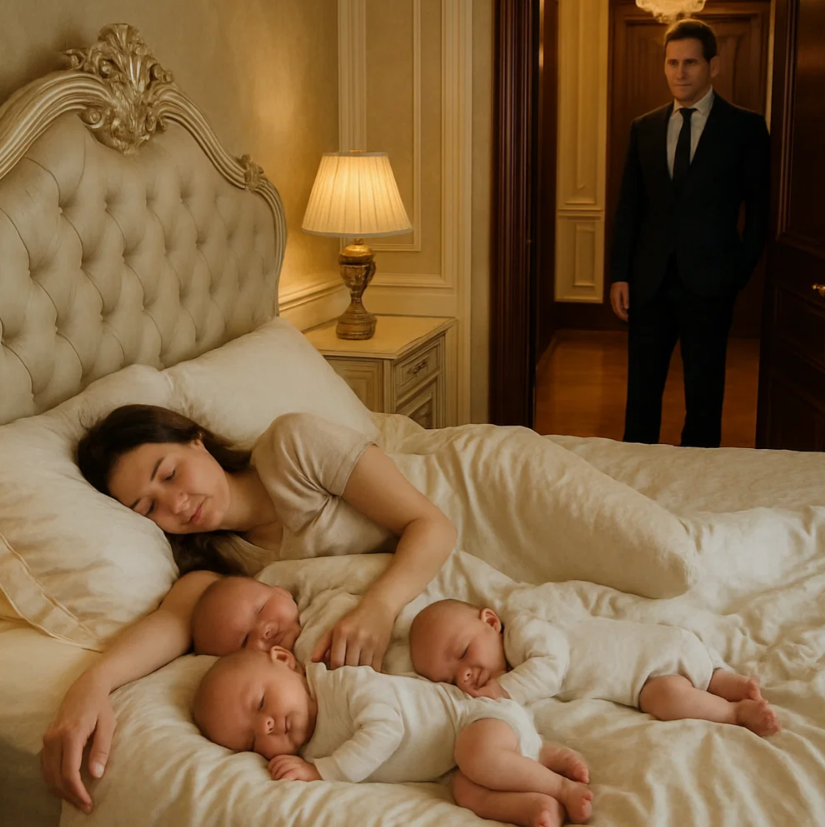 That evening, Alexander returned and froze in the doorway. His mansion was quiet. Grace sat on the sofa, all three boys curled against her, sound asleep. For the first time in years, the house looked peaceful—like a home.