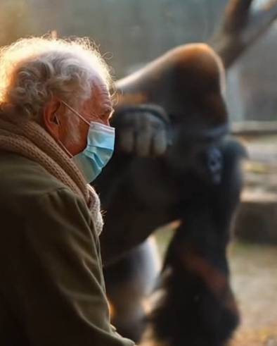 The gorilla pressed its forehead gently to the bars — a gesture of affection and absolute trust. Then, in front of stunned staff, it reached out carefully, touching Arthur’s shoulder with a tenderness no one expected from such a powerful animal.
