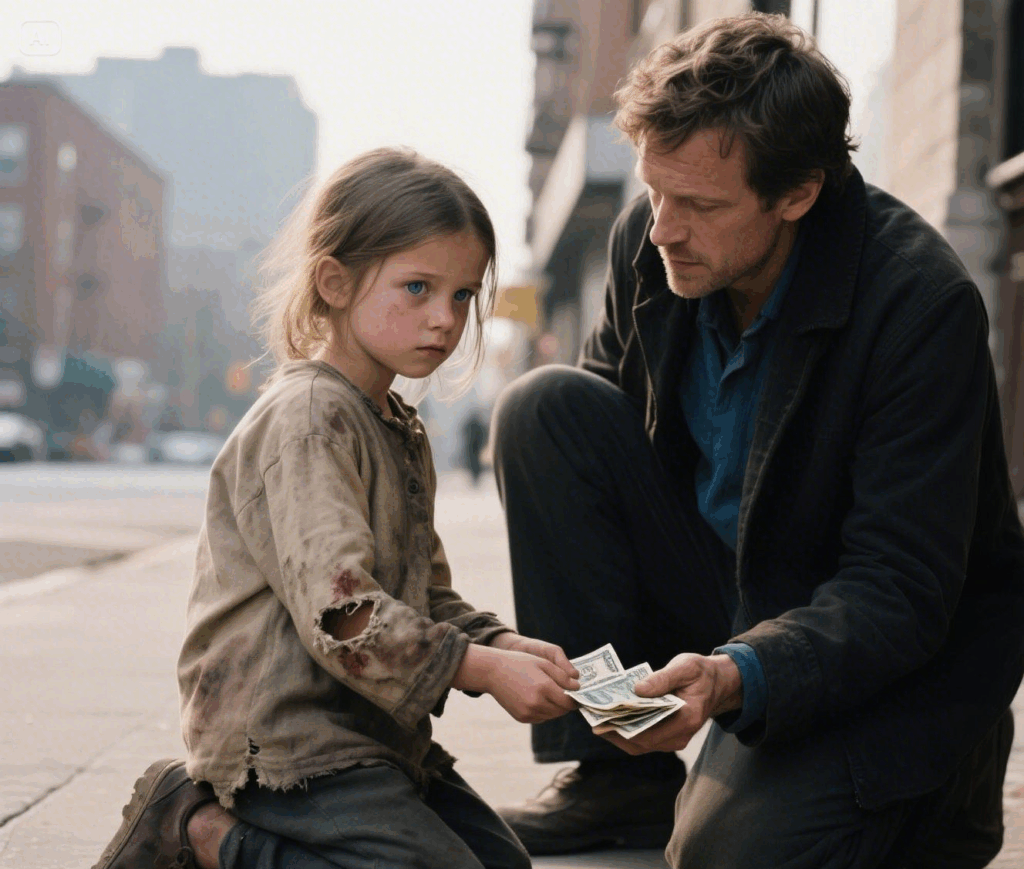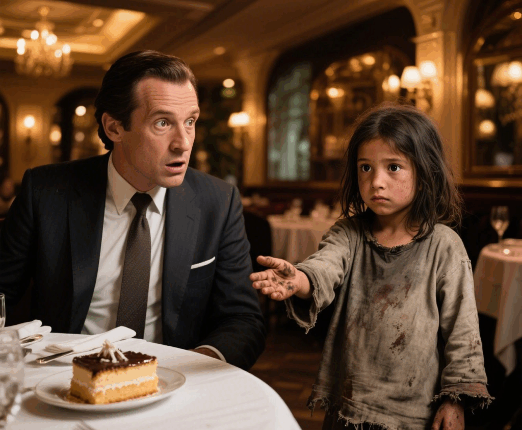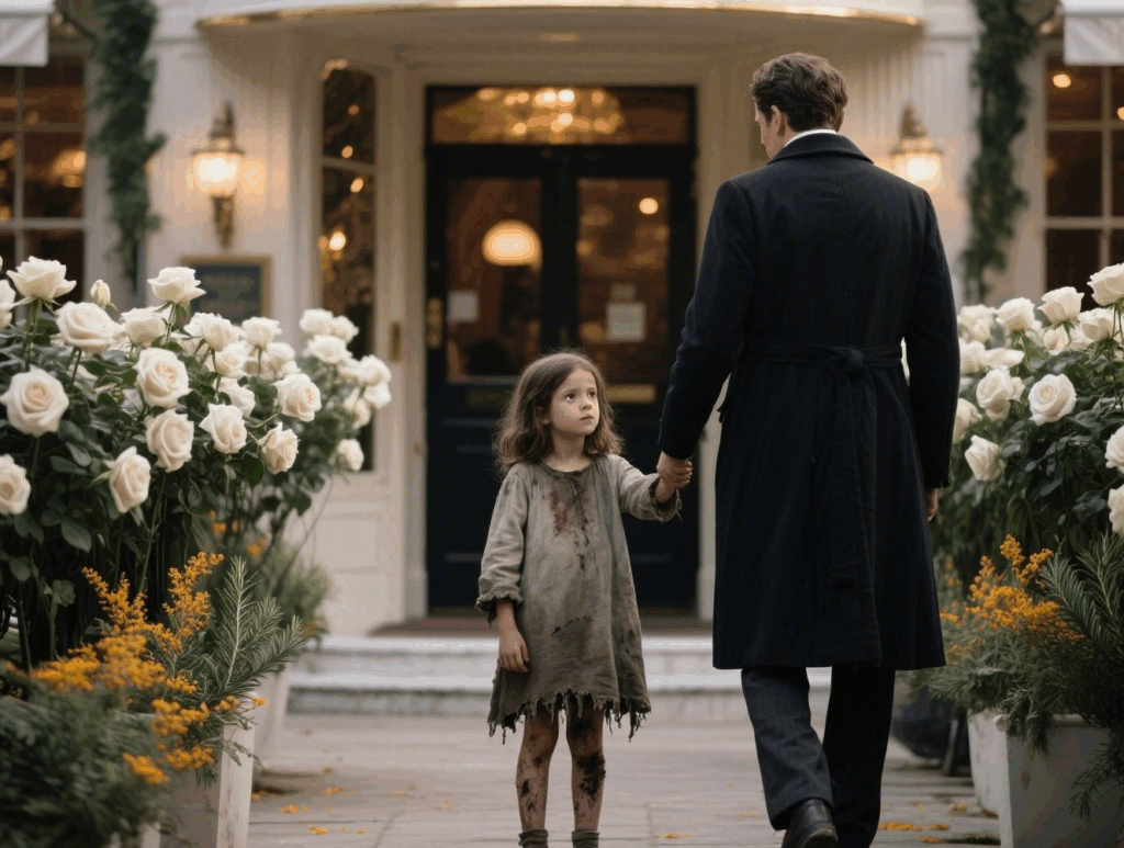 A little girl, no older than six, stood before him. Her clothes were torn, her cheeks smudged with dirt, and her shoes had long lost their soles. But her eyes—those dark, deep eyes—held a gravity beyond her years.