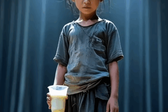 The lights rose softly as the stage hushed, and from behind the curtain stepped a tiny figure—barefoot